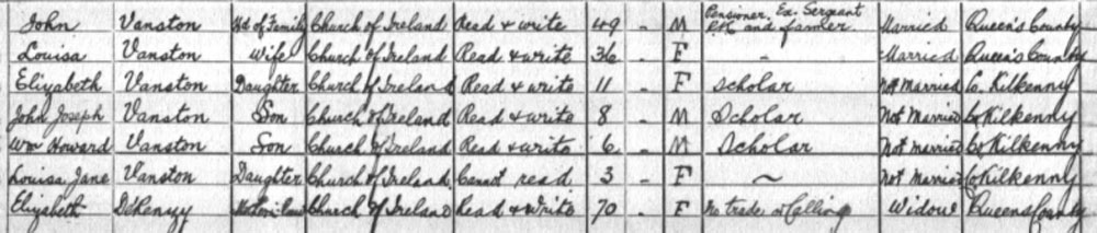 1911 census Living in Stradbally, Queen's Co