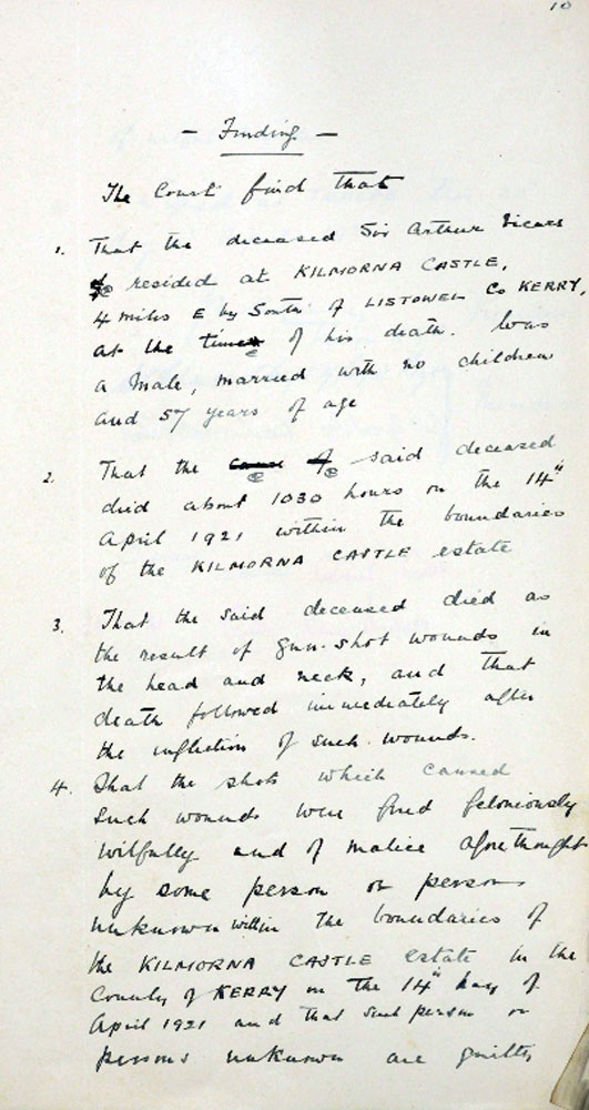 1921 Apr 14, Shot at Kilmorna Castle, Kerry