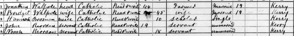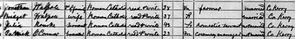 1911 census at Ballyea, Ballynahaglish, Kerry